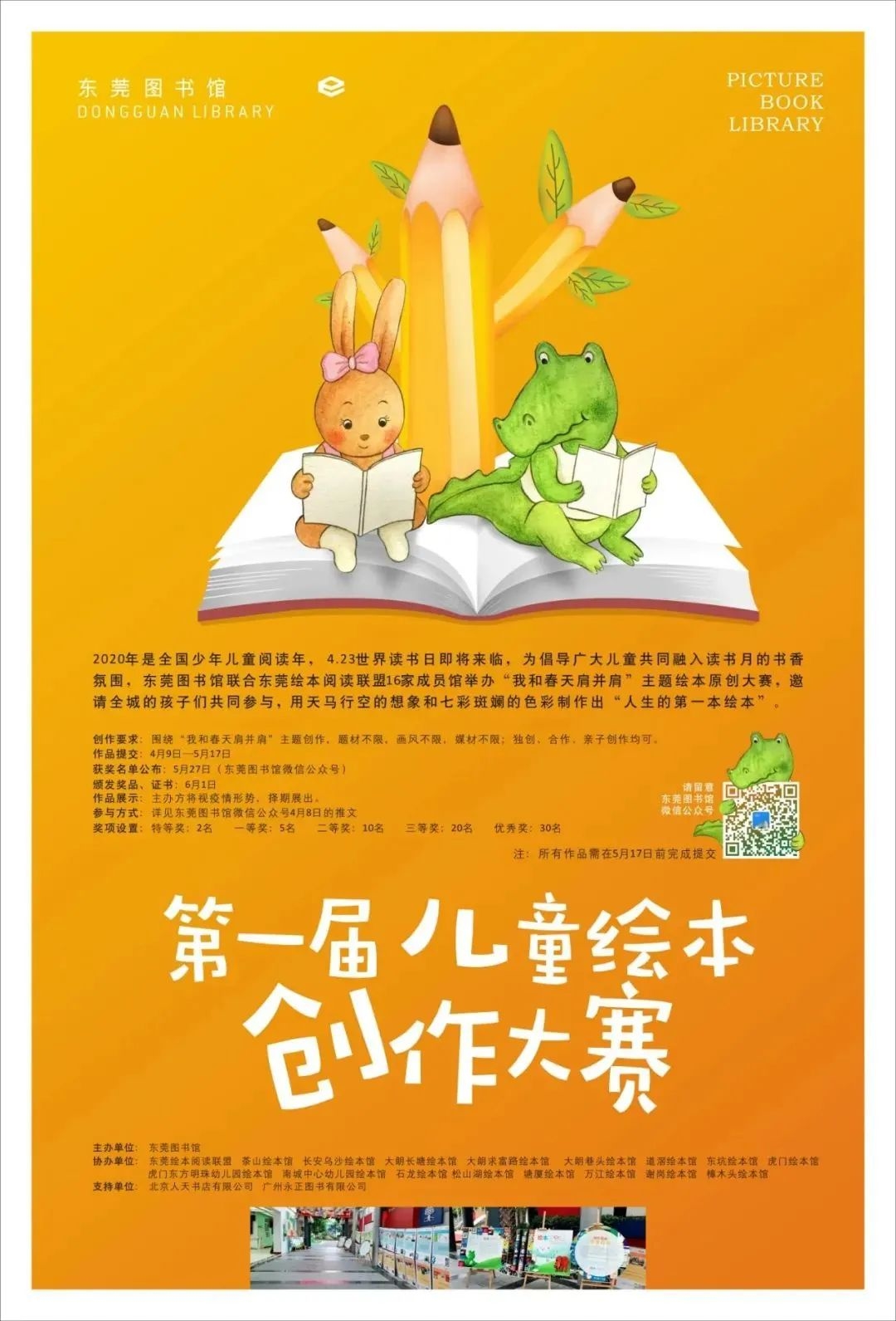 2020年是全国少年儿童阅读年,为倡导广大儿童共同融入读书月的书香氛围,让更多的小读者畅游书海,品味书卷气息,陶冶艺术情操,感受绘本之美,营造书香社会。东莞图书馆联合东莞绘本阅读联盟16家成员馆举办“我和春天肩并肩”主题绘本原创大赛,邀请全城的孩子们共同参与,用天马行空的想象和七彩斑斓的色彩制作出“人生的第一本绘本”。