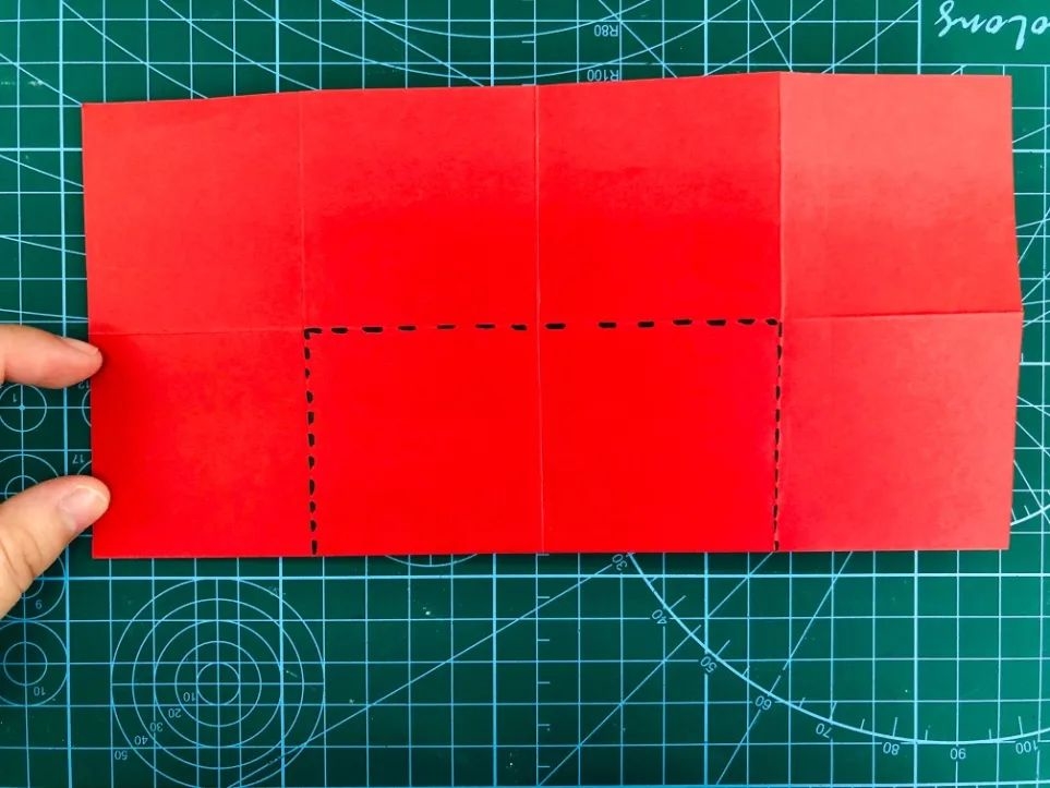 2.剪掉封口那边中间的两个格子(如图所示画虚线处)