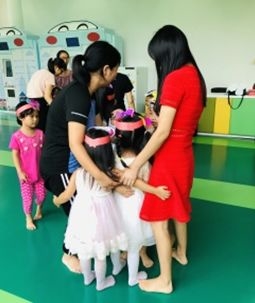最后利用手工制作动物头饰与小游戏“抱一抱”激发小朋友对手工游戏活动的兴趣,使小朋友在游戏中获得快乐感。并且增加小朋友与家长间的亲子互动。结合故事与游戏告诉小朋友要学会互相帮助,相亲相爱,不效仿成语故事中的 “狐狸”与 “老虎”。