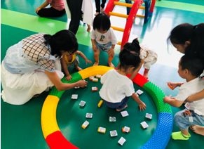 最后利用奇迹玩具搭建“果篮”,激发小朋友对玩具搭建的兴趣,使小朋友在搭建中获得自信与成就感。并且通过帮小猴子运送水果锻炼小朋友的“爬、走、蹲、抓”等手部与腿部的运动能力,增加小朋友与家长间的亲子互动。