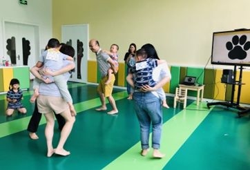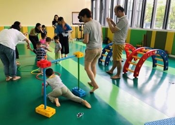 最后利用小游戏“找脚印”与“亲子背背乐”激发小朋友对游戏活动的兴趣,使小朋友在游戏中获得自信与成就感。并且增加小朋友与家长间的亲子互动。本次课程主要锻炼小朋友的手部与腿部的运动能力,通过“爬、走、跳、蹲、抓”等基本动作让小朋友在活动中学习与锻炼。