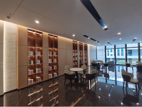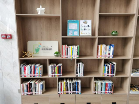 该阅读加油站配备以经管哲学类为主的图书500余册,配备电子显示屏、书架、阅览桌椅等基础设施,为企业赋能,员工充电提供干净舒适的阅读空间,不定期邀请业界讲师开展企业员工赋能读书会。