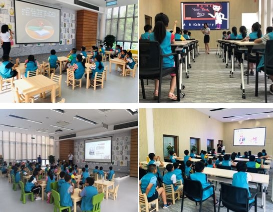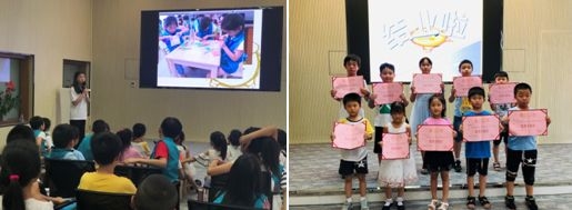 日常活动除了有绘本故事以及少儿英语的课程外,更有消防员叔叔为小馆员讲授安全知识,暑假之际,小朋友的安全问题是父母心上的一根弦,通过知识教授和情景模拟,小馆员学会了防火、防水等安全知识,并表示会保护好自己,不让父母担心。还有“恐龙知多少”百科知识讲座,不仅让小馆员了解到恐龙知识,而且锻炼了小馆员的表达能力,大胆分享自己所喜爱的恐龙。