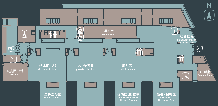 | 2 | 图书借阅区 | 以社会科学、艺术、历史、轻工业类等类型藏书为主,并提供中英文图书借阅 | 全体读者 |