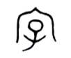 房子下面有一个女子手置胸前,祥和地坐着。