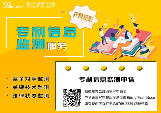 依托本馆专利数据库,松山湖图书馆根据企业需求,为园区企业免费提供专利信息监测服务,可定期监测与追踪关键技术领域及竞争对手的专利动态。