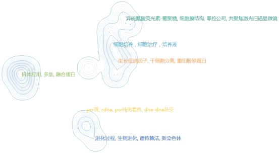 2025年1月至2025年8月松山湖发布的具身智能相关专利一共31条,主要申请机构有广东菲鹏制药股份有限公司、广东医科大学、中美赛尔生物科技(广东)有限公司、广东菲鹏生物有限公司和广东赛尔生物科技有限公司等,上述企业所申请专利技术主要为C07K(肽)和C12N(微生物或酶;培养基)等(图1)。根据聚类地图(图2)显示,所有专利的核心词为细胞培养、干细胞分离、抗体应用和重组胶原蛋白等,其中抗体制备及应用相关专利数量最多,是专利申请的热点。