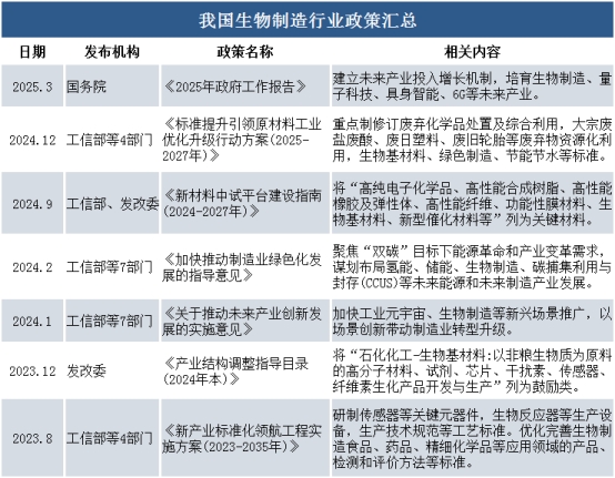 我国生物制造行业政策汇总