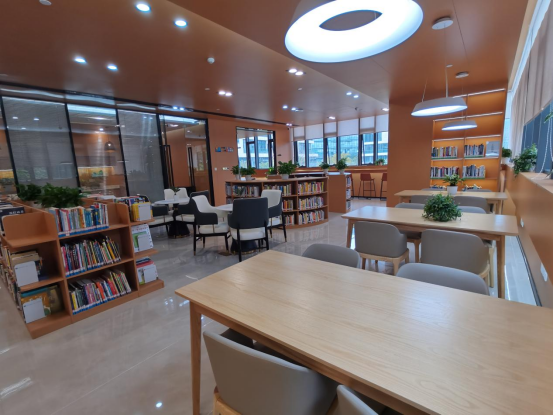 “松湖创阅·莞”空间结合城市阅读驿站以及党群服务中心提供综合化服务,成为中部片区重要基层服务阵地。空间主要以科技类藏书为特色,并配有红色专题、社会科学、家庭教育、少儿图书、绘本等类型图书,满足社区高层次人才及家属、周边居民等不同层次读者阅读需求,同时配置自助借还设备、智能门禁系统,设有活动大厅、共享办公区、心灵驿站等功能区,不定期开展科技普及、企业管理培训、家庭教育等方面的服务,满足不同读者学习、生活、工作等多样化文化需求。