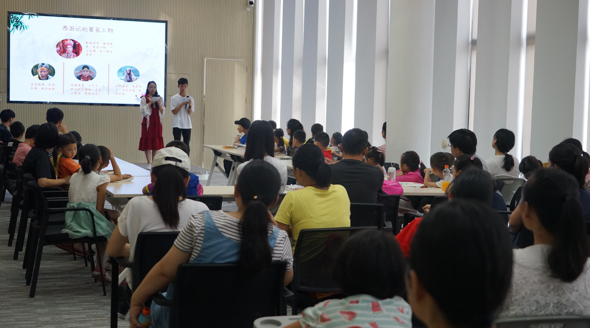 松山湖图书馆联合东莞职业技术学院崇德书院在暑期面向青少年读者开展了系列的经典读书会活动,通过好玩、有趣的阅读方式带领读者体验阅读名著的乐趣。第二期围绕经典名著《西游记》,开展了大话“畅”西游的阅读分享会,共吸引近70位青少年读者和家长参与其中。