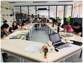 6月30日,松山湖图书馆生活学堂举行了一场“绘经典《诗经草木绘》之树丛”的绘画活动。