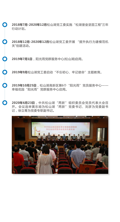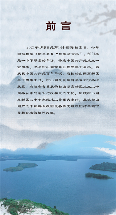 本次展览旨在向社会各界展示松山湖高新区二十年创业历程和巨大变化,回顾松山湖高新区党建工作重大事件,呈现松山湖广大干部群众在园区各级党组织团结带领下昂扬奋进的精神风貌。
