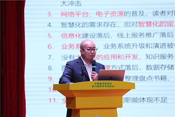 嘉宾致辞后,三位知名专家先后作论坛主旨报告。程焕文从国际视野的角度提出关于“新时代青年图书馆学人的使命与责任”的思考,呼吁要敢于担当、勇于开拓、满怀忠诚,立足国情发展新时代图书馆事业、推动文化繁荣、推动社会进步,为世界图书馆发展贡献更多的中国经验和中国智慧。孙坦围绕如何通过人工智能利用图书馆海量知识帮助人类更高效地传播、学习和发现知识,促进技术创新,对“图书馆智能知识服务的未来”进行了探讨。华为技术有限公司文旅行业首席专家朱洪波以“科技点亮知识之光,智慧助力图书馆建设”为题,结合5G、大数据和图书馆业务实际场景,对智慧图书馆建设进行了剖析。